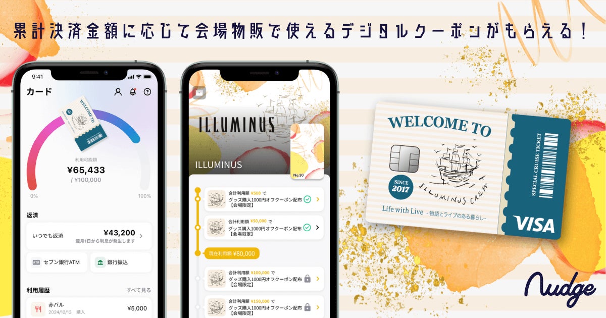 ナッジ株式会社(本社:東京都千代田区、代表取締役:沖田貴史)は、次世代クレジットカード「Nudge(以下「ナッジカード」)」の新ラインナップとして、ライブエンターテインメント企業「ILLUMINUS」の公式クレジットカードを、2月3日(月)より提供開始しました。