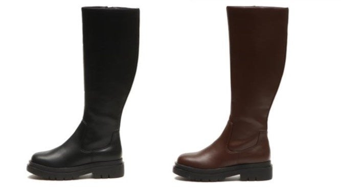 履くだけで一気に今年らしく仕上がるトラックソールのロングブーツです。ハーフパンツやチュニック、ワンピースに合わせたくなる、今季マストなアイテムです。筒の太さが絶妙で美脚効果大!脚をすっきり見せてくれるシルエットに仕上げています。