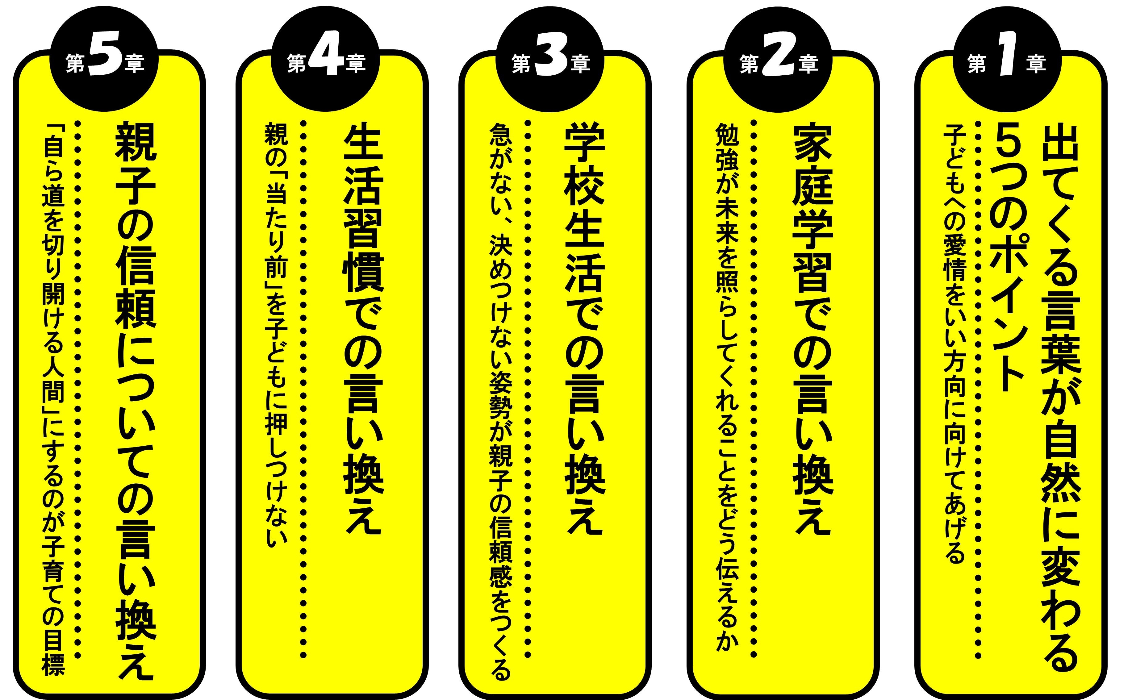 本書を読めば、家庭学習・親子の信頼関係・学校生活などの各シーンで「言ってしまいがちな言葉」を、「子どもに届く言葉」に変換できるのです。