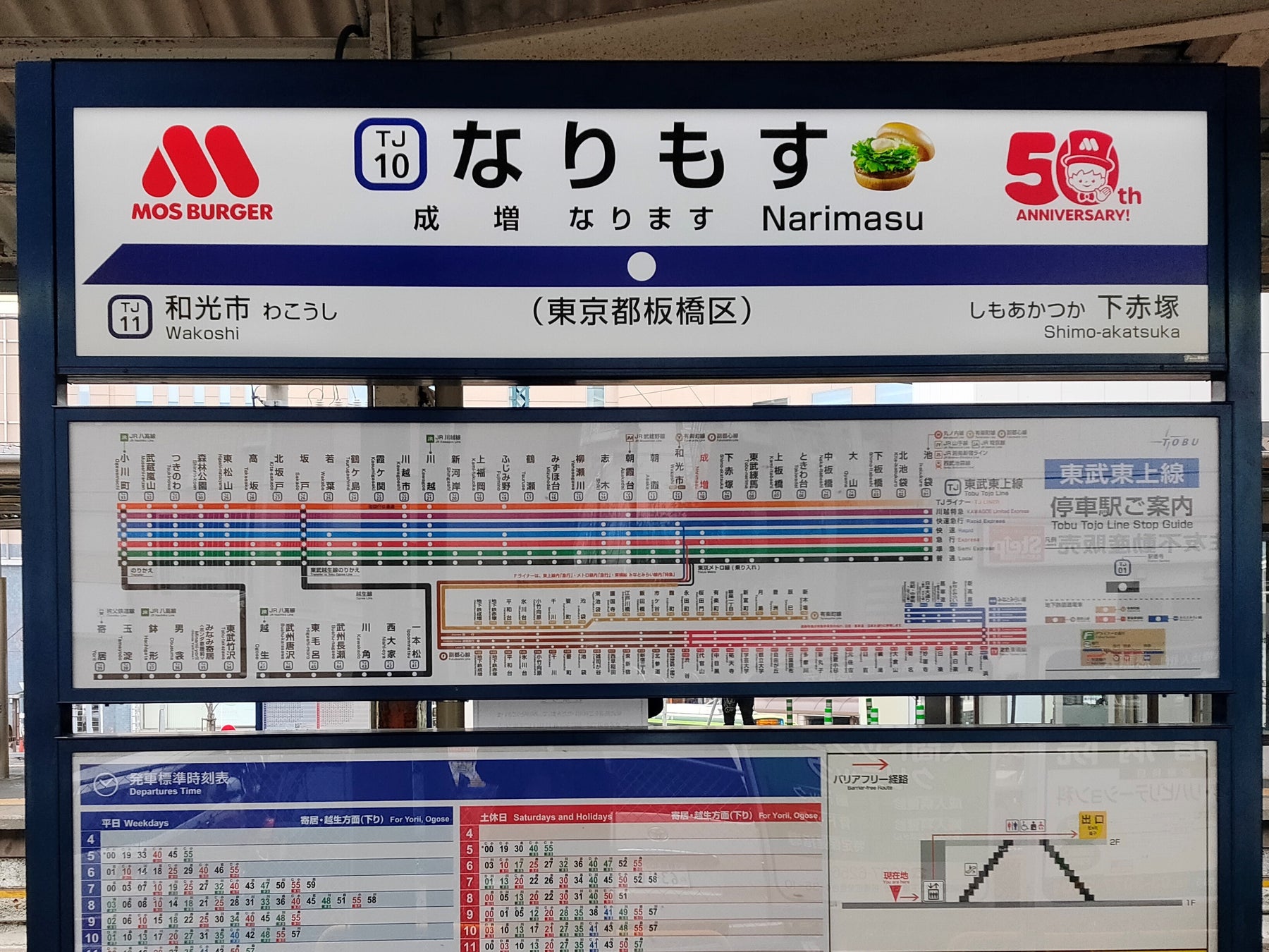 モスバーガー50周年「なりもす駅」では、「成増駅」ホームと南口の駅名看板を「なりもす駅」に変更しました。生まれ故郷である成増への感謝の気持ちを表現するとともに、成増駅周辺や板橋区などの活性化を目指す取り組みとして行ったものです。これからもハンバーガーがくれた出会いに感謝するとともに、次の50年へ向けて「人間貢献・社会貢献」の経営理念のもと、これまで以上にお客さまに愛されるモスバーガーを目指してまいります。