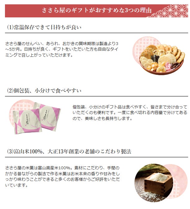 創業101年の老舗米菓メーカー日の出屋製菓産業株式会社(本社:富山県南砺市、代表取締役社長:川合洋平)が展開するささら屋は、2025年お歳暮向けの冬ギフト商品を発売開始しました。