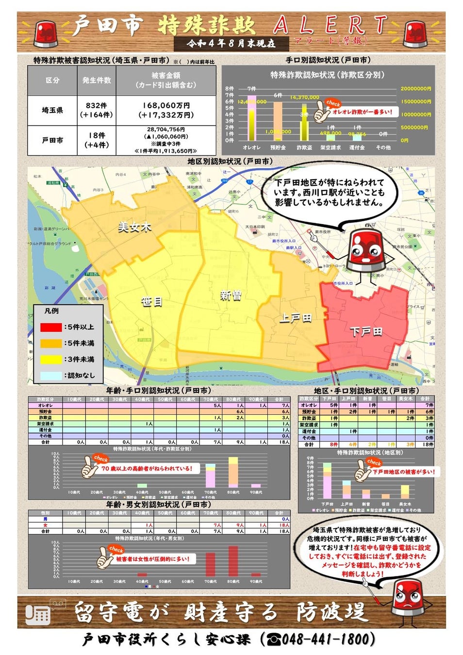 『戸田市特殊詐欺アラート』として地区別発生状況等を毎月公開~