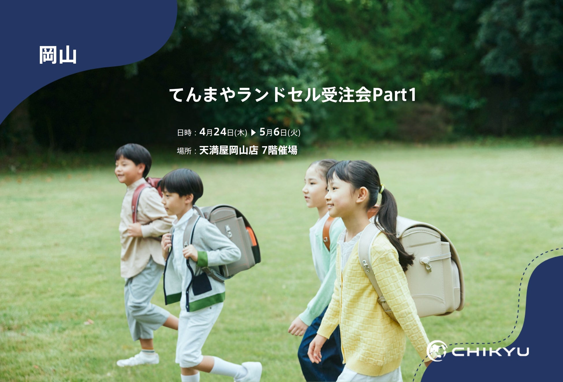 ランドセルの企画・販売を行うCHIKYU株式会社(東京都港区、代表取締役:村尾光一)は、岡山・天満屋岡山本店での「てんまやランドセル受注会Part1」に参加いたします。