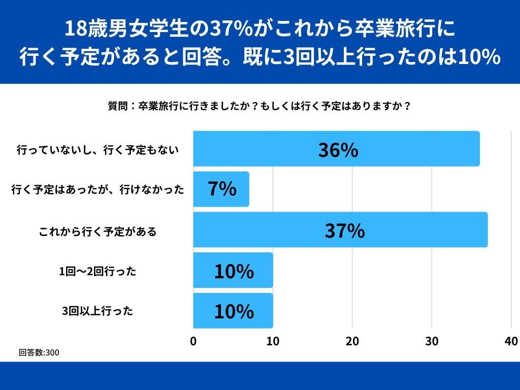 18歳男女学生の37%がこれから卒業旅行に行く予定があると回答。既に3回以上行ったのは10%【卒業旅行に関するアンケート】