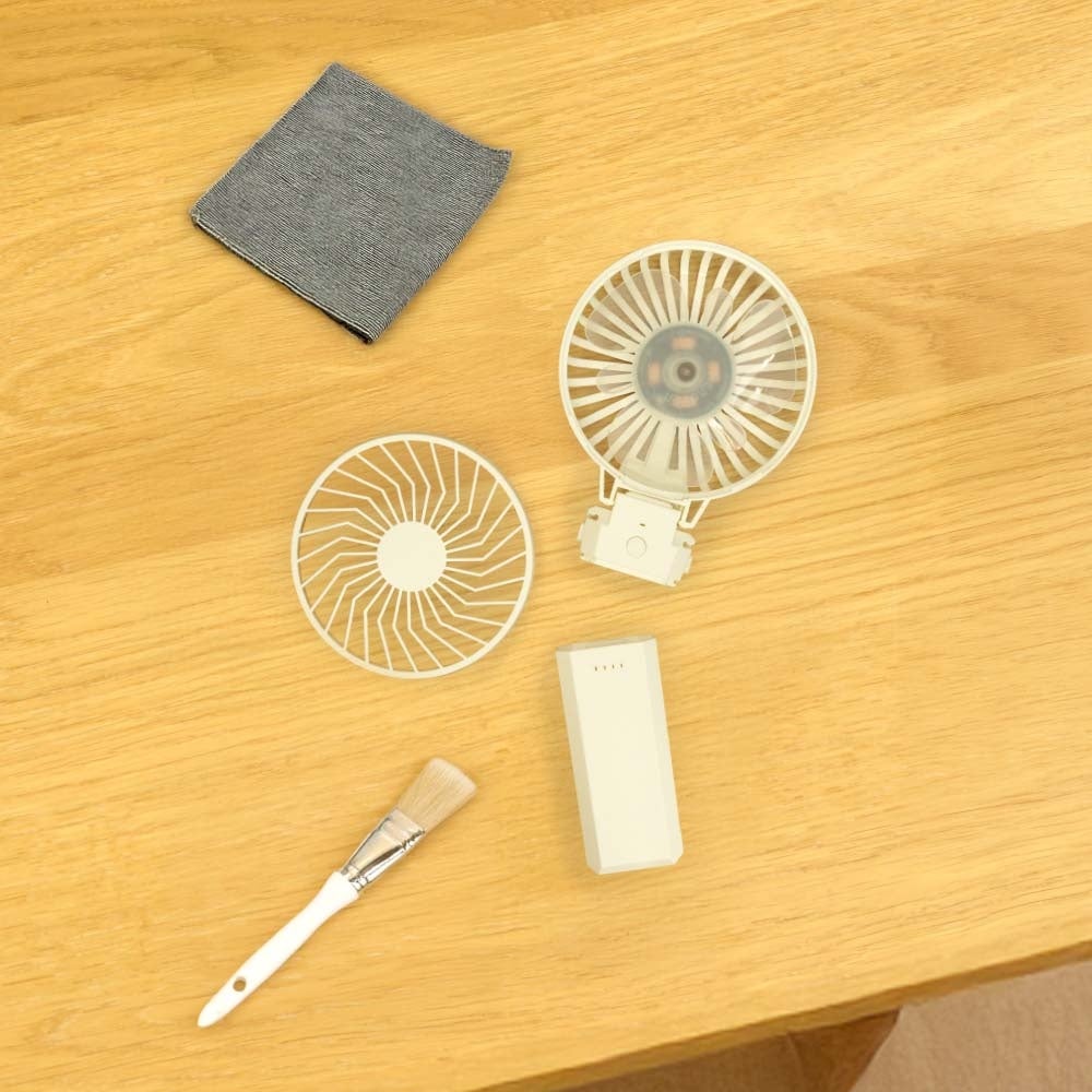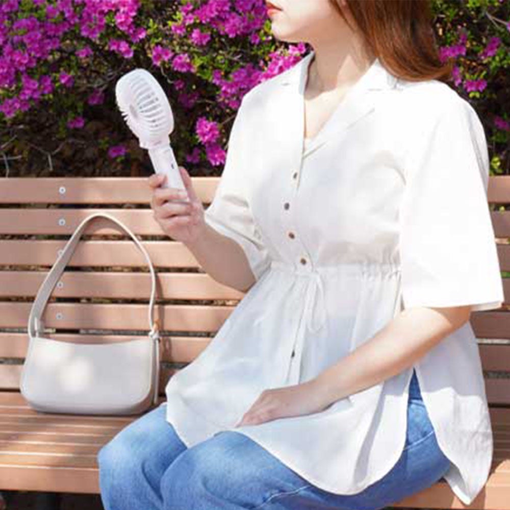 ストラップを付けて手持ちで使うのはもちろん、スタンドいらずのデスクファンとしてもお使いいただけます。バッグなどにしまうときにも折りたためるため、コンパクトに持ち運べます。