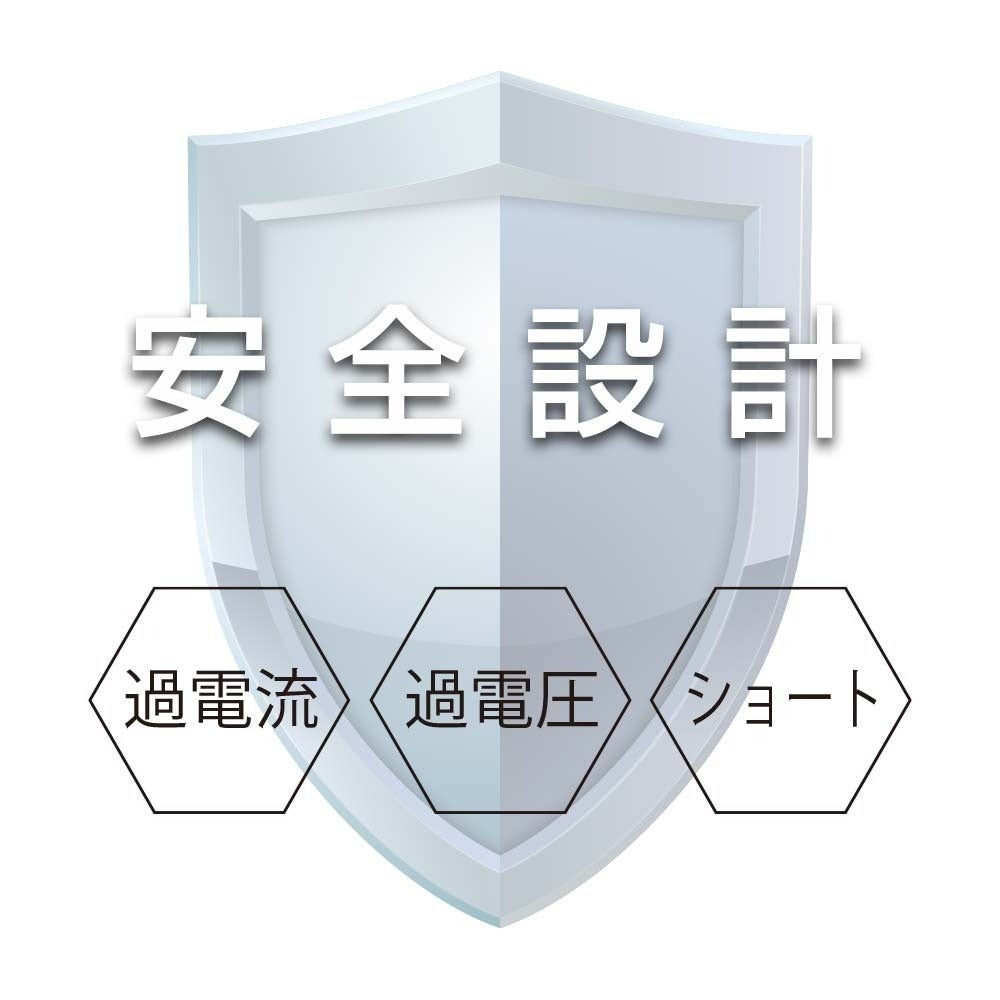 保護機能の「過充電(電圧/電流)保護」「過放電(電圧/電流)保護」「短絡(ショート)保護」を搭載し、高い安全性を備えております。バッテリーの劣化を抑えながら、ショート時の過電流を止めることで、万が一の事故を未然に防ぎます。
