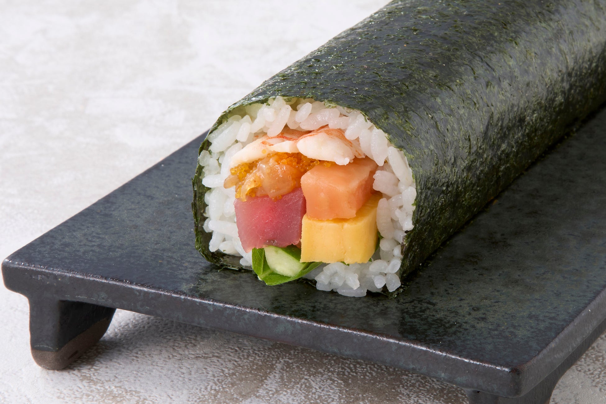 ◯商品説明:まぐろやサーモン、海老などの海鮮を巻いた太巻です。