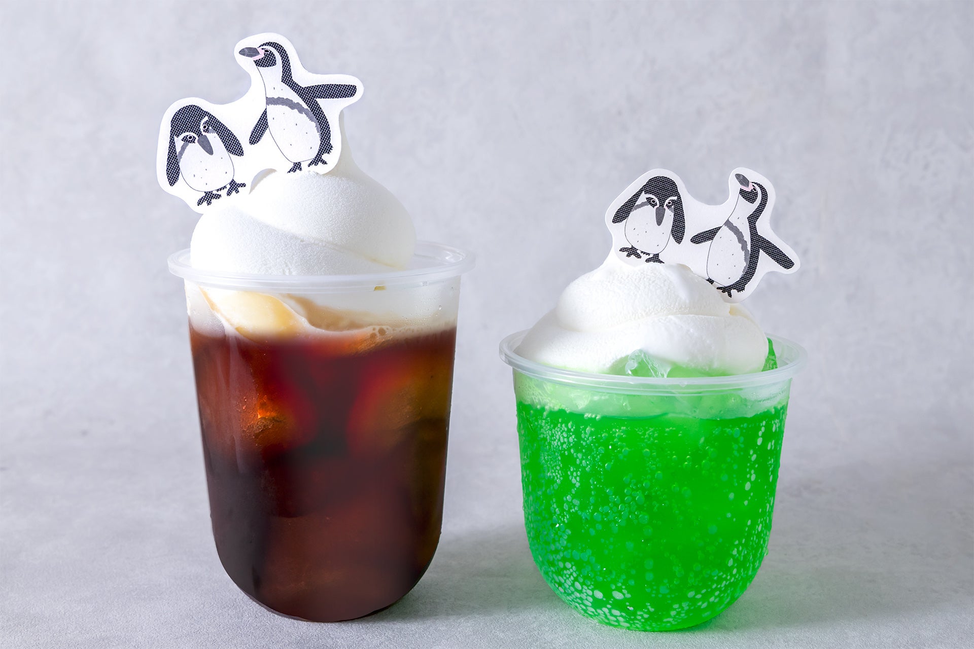 仲良しの親子、お友達、カップルで楽しめるペアドリンクです!お好きなドリンクを選んで、フロートをお楽しみください!SKYSHOREにいるペンギンモチーフのモナカ付き!