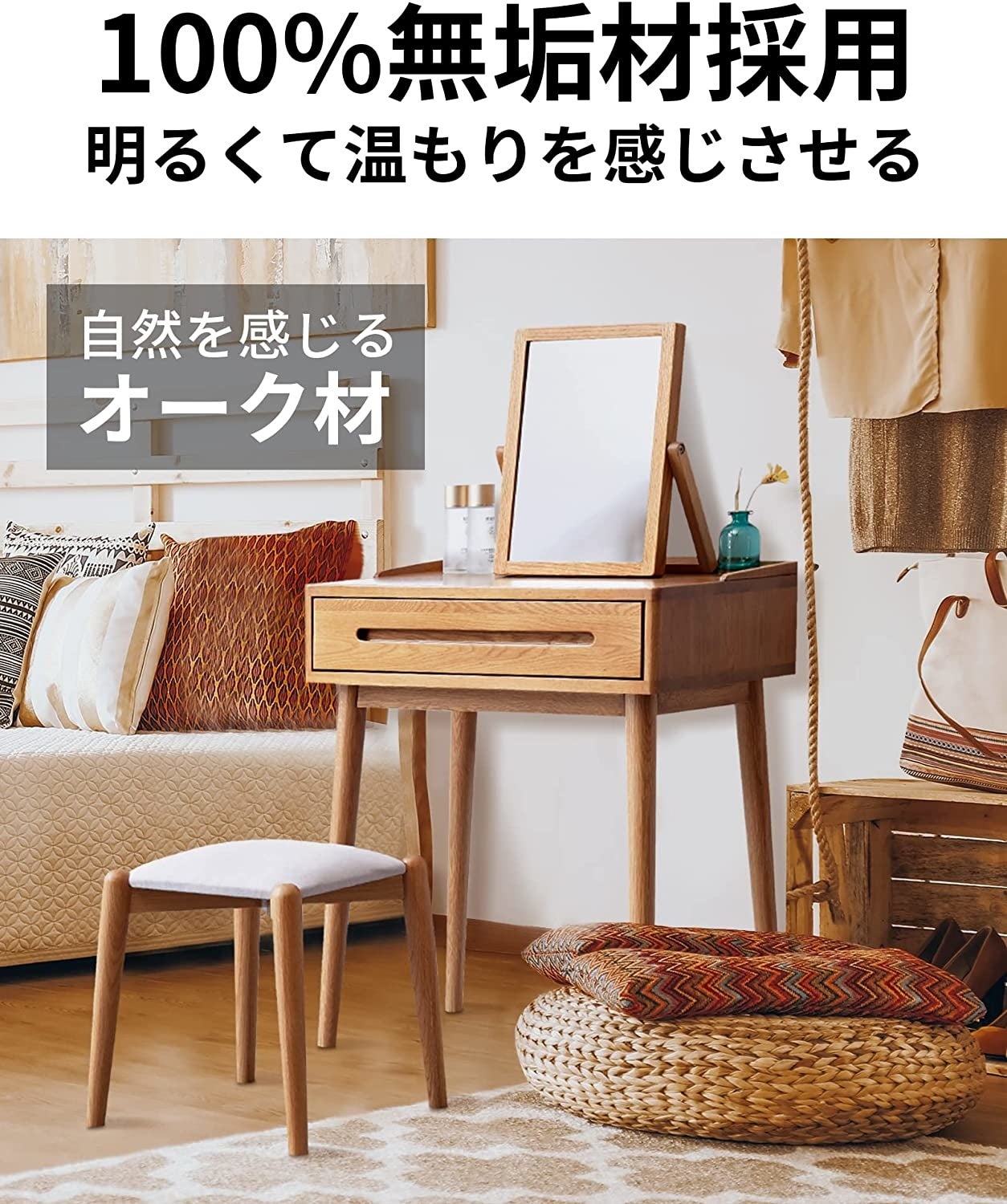 - 源氏木語YESWOOD 天然オーク木材 ドレッサー 化粧台