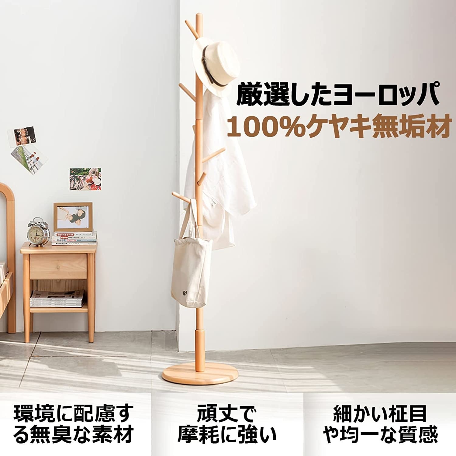 - 源氏木語YESWOOD ケヤキ天然木 ポールハンガー