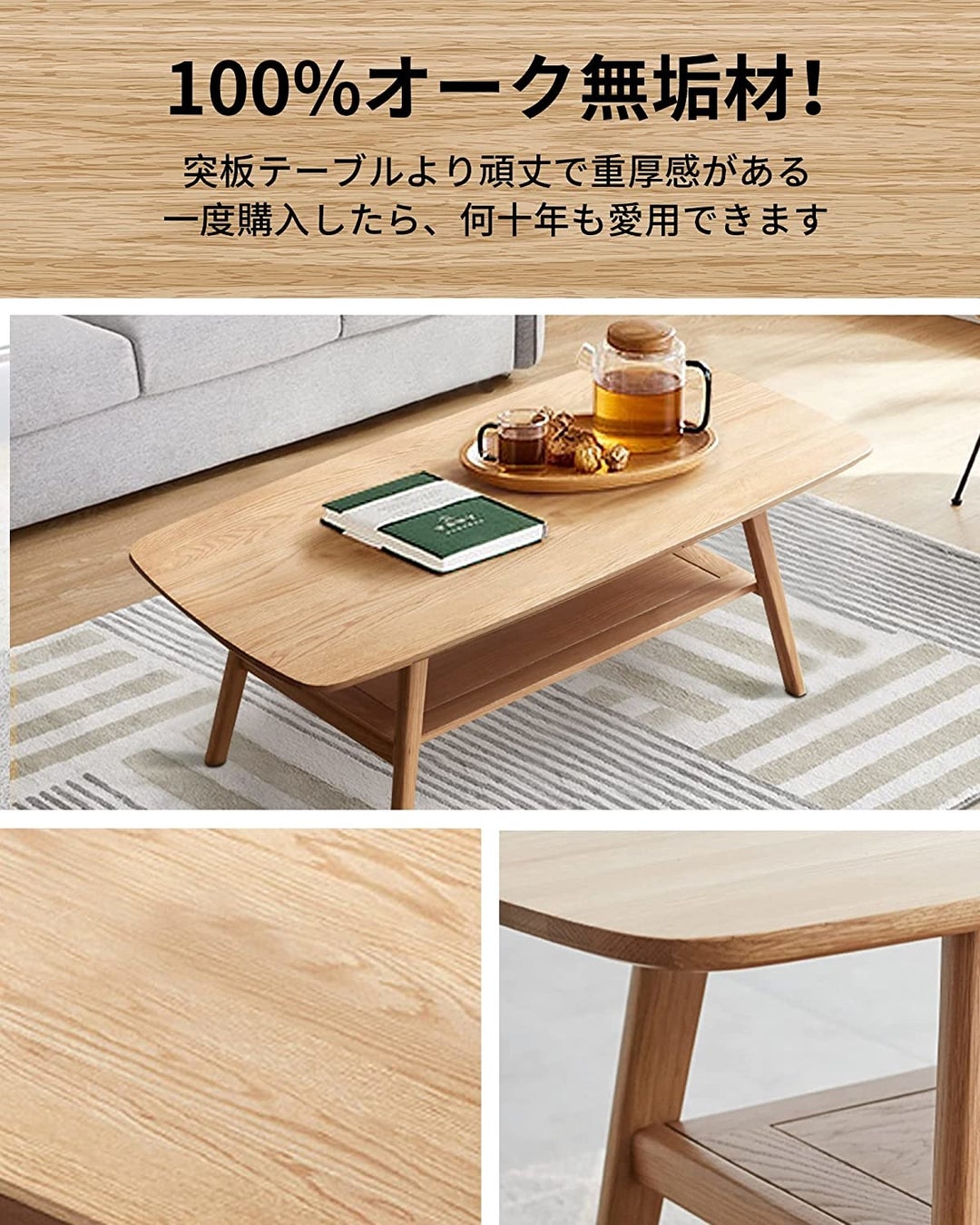 - 源氏木語YESWOOD 天然オーク木材 センターテーブル ローテーブル100*50cm