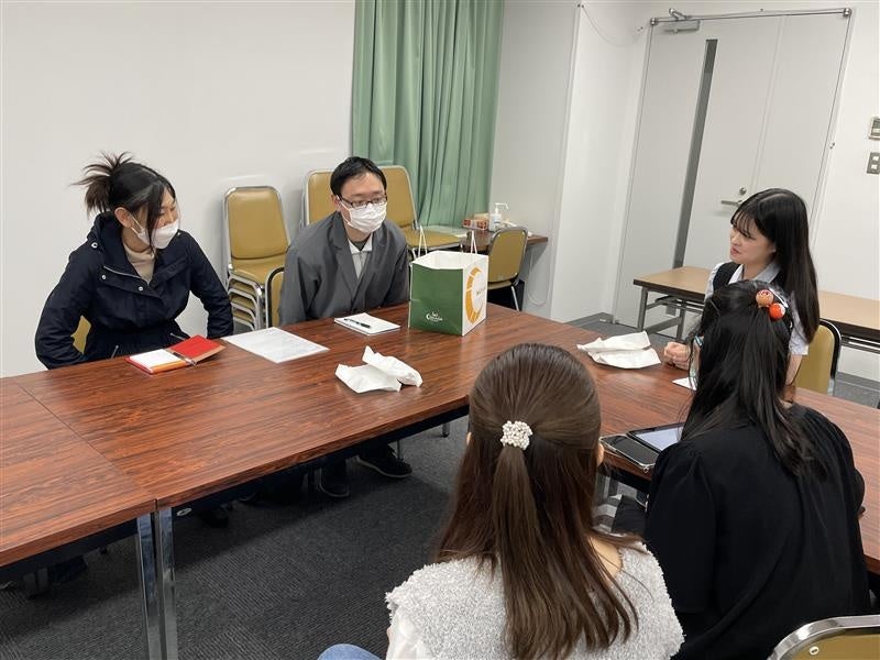 ジョリークロワッサン店長様、副店長様の説明を聞く学生たち