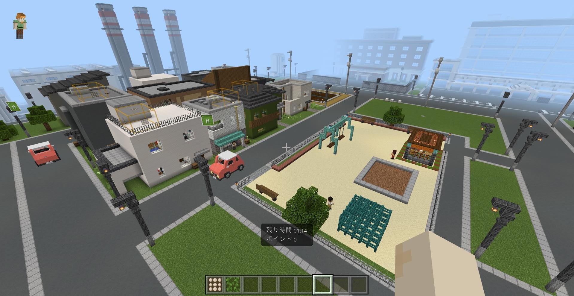Minecraftを用いて、教育版・統合版Minecraft用ワールドに脱炭素・カーボン ニュートラルが普及した社会と気候変動が進んだ社会を比較する仮想都市です。