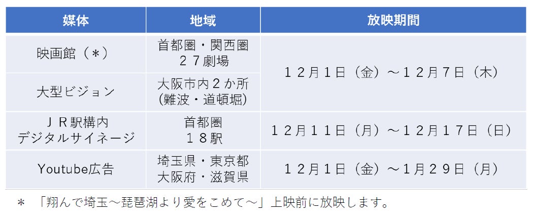 映画の原作漫画とコラボし、埼玉の「観光スポット」と「食」を紹介する3種類の動画を放映します。