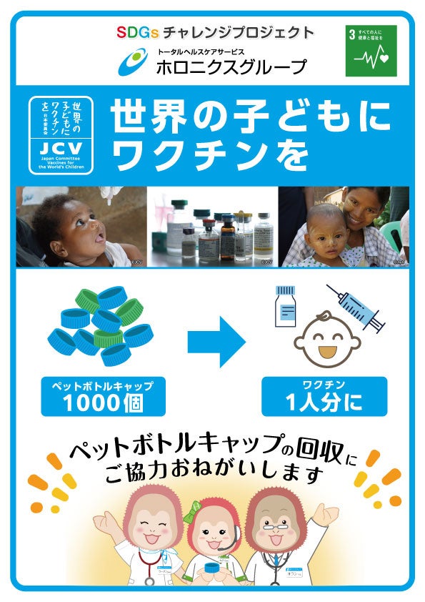 医療法人医誠会(本社:大阪府大阪市、代表者:谷 幸治)が運営する 医療複合施設i-Mall 医誠会国際総合病院(大阪市北区南扇町)は、院内の3か所にペットボトルキャップ回収ボックスを設置しています。集まったペットボトルキャップは、「世界の子どもにワクチンを日本委員会」指定の業者が回収、同委員会への寄附となります。開院後初めて、昨年11月から今年7月までに集まった93キロのペットボトルキャップの回収結果として、14名分のワクチンが提供されたという報告を受けました。