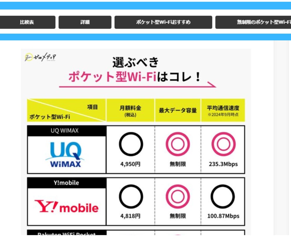 本日2025年2月6日(木)より、Wi-Fiカテゴリの記事内でスクロールの手間を軽減するために「ページ内リンク機能」を実装しました。ページ内上部にある「比較表」や「詳細」のボタンをタッチすることで求めている情報の該当箇所まで瞬時に移動することができます。