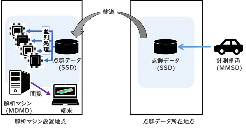 ※5 三菱インフラモニタリングシステム(MMSD)とは、計測車両が道路や鉄道沿線などを走行しながら、高精度な点群データを取得した上で解析する三菱電機が開発したシステムです。MMSDは三菱電機の登録商標です。