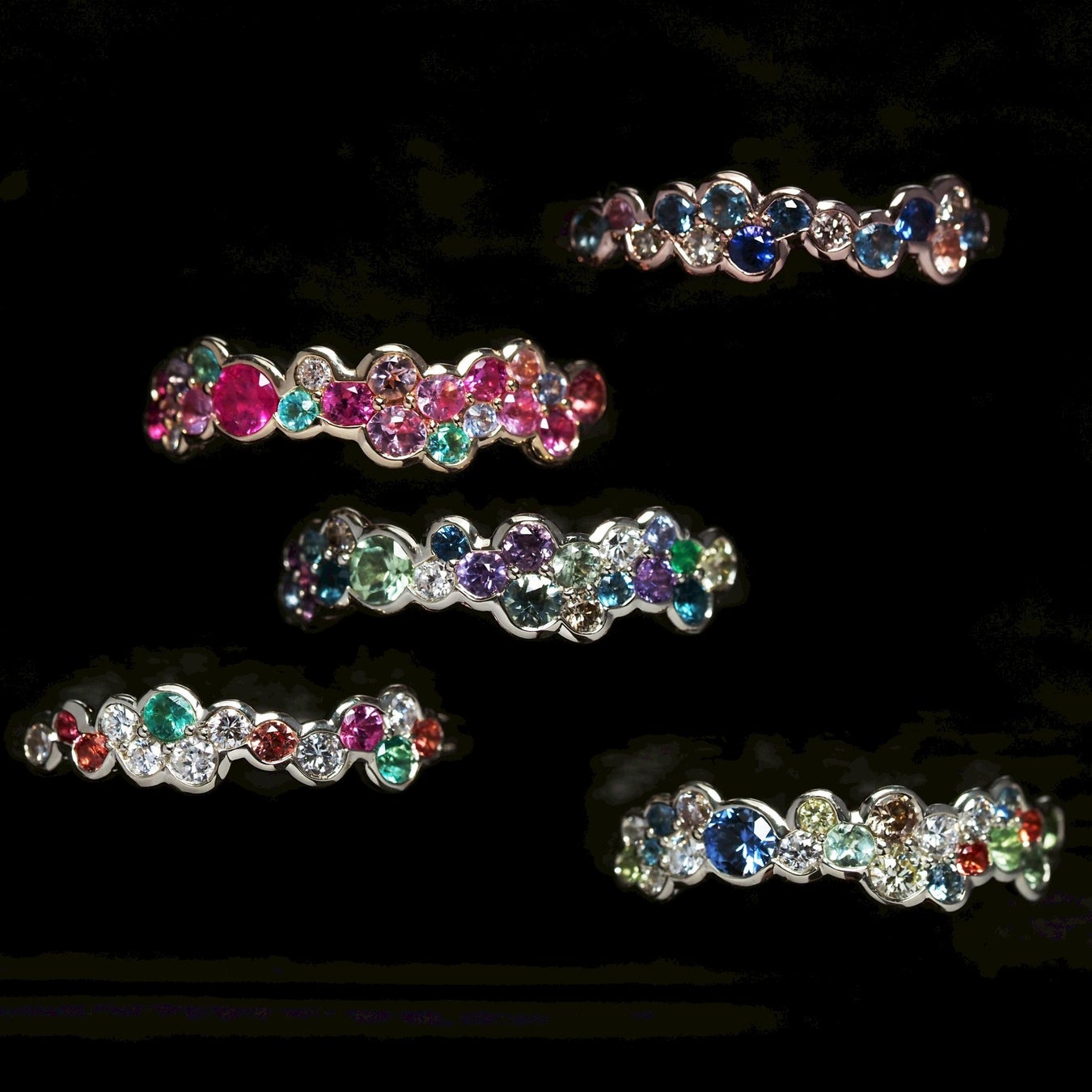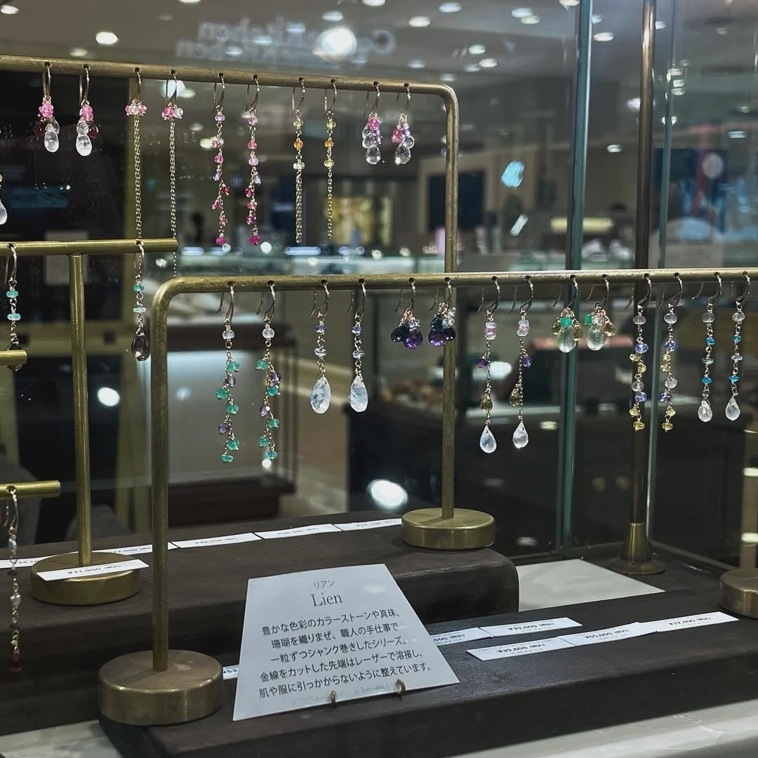 繊細な金線で宝石を一つひとつ包み込む“シャンク巻き”の技法から生まれた、「Lien(リアン)」シリーズ。熊本店では、これまでにない多彩な配色を揃えて登場いたしました。
