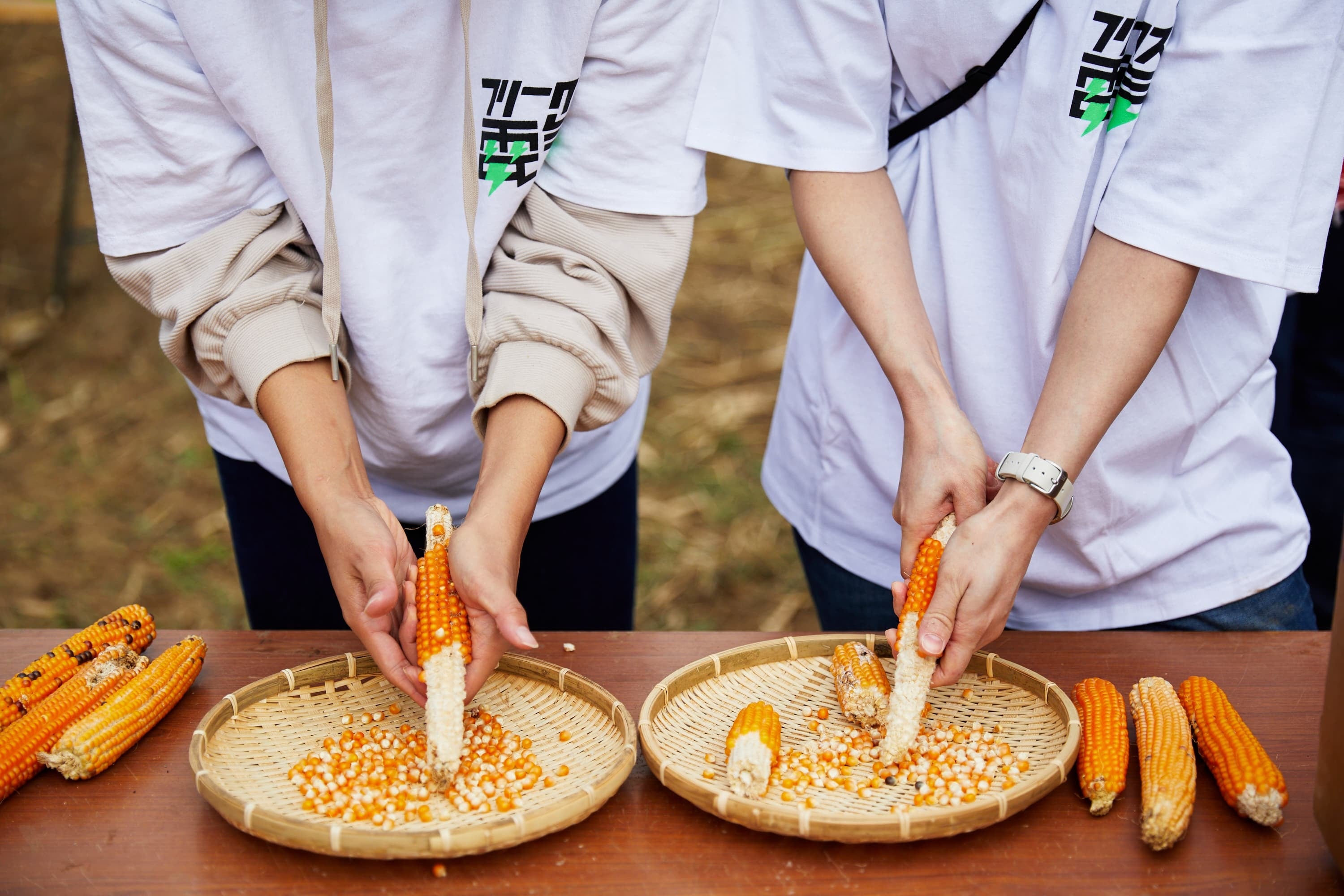 芯から実を外して販売する場合、不揃いなどの理由で製品化できなかったトウモロコシは、実のみの粒販売も検討中。また残った芯や茎の部分を粉末にしてキノコ栽培の業者へ寄付し、キノコの生育に使用予定。キノコの生育で出た廃棄物はポップコーン畑の肥料に使用できるエネルギー循環を目指す。