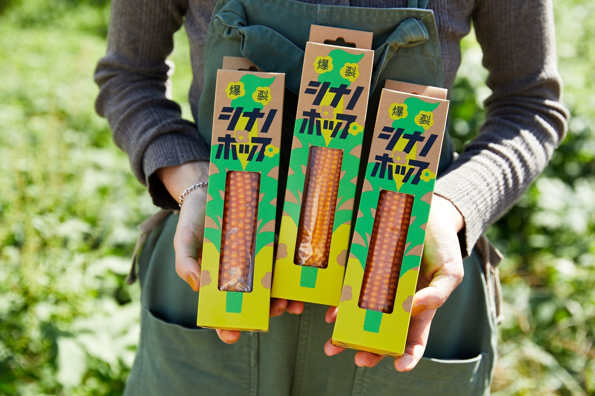採れたてのポップコーンを“そのまま”真空パックに詰めて販売。切り込みを入れて電子レンジで加熱するだけでポップコーンが完成する。