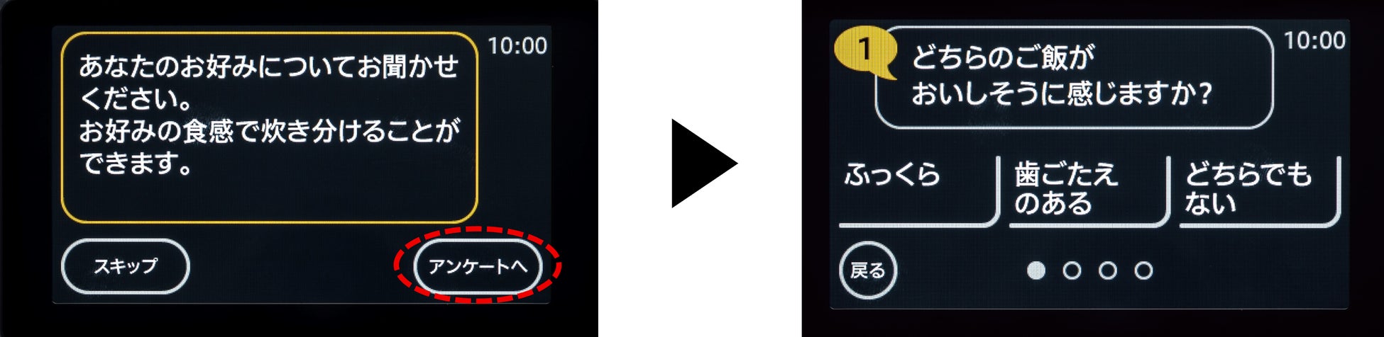 また、事前にごはんの好みに関する3問のアンケートに回答することで、自動で最適な食感に近づける「お好みごはん診断」機能も搭載。より早く自分好みの食感を見つけることができます。