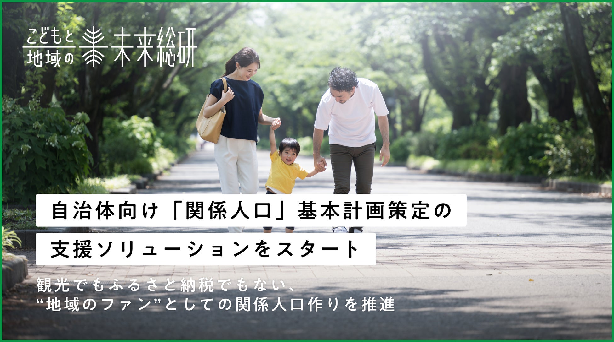 そうした、「観光」でも「ふるさと納税」でもない、“地域のファン”としての関係人口づくりを推進する中で培ったノウハウを全国へ展開するため、こどもと地域の未来を創造する事業スタジオ「こどもと地域の未来総研」では、自治体向けの「関係人口」基本計画や企画支援ソリューションをスタート。