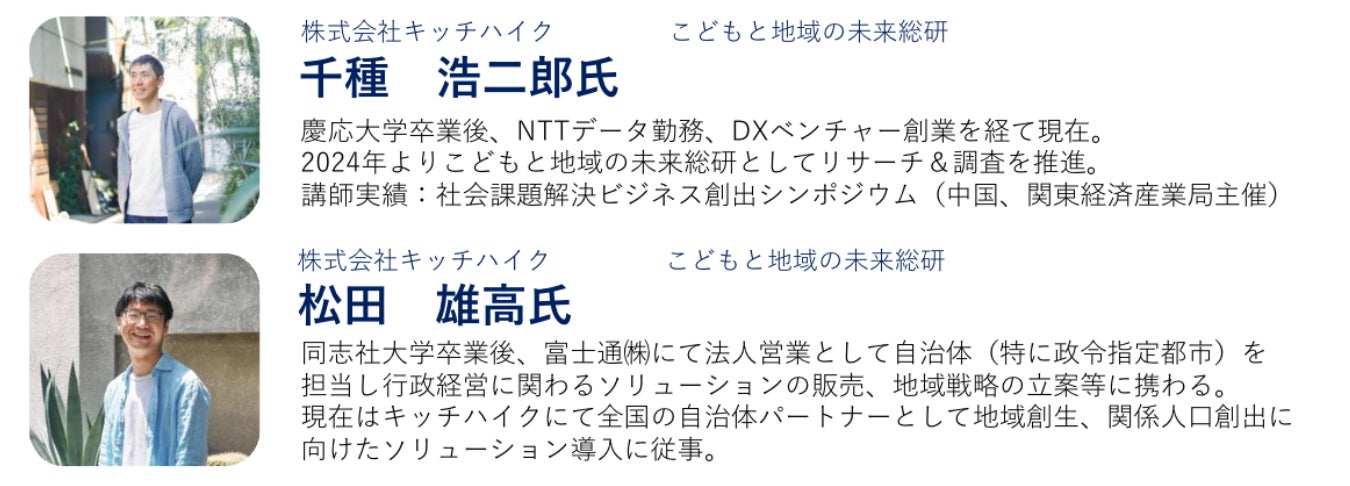 内閣府優良事例に選出された「保育園留学」でメディアにも多数取り上げられている株式会社キッチハイクの講師陣が、皆様の疑問や課題に応えます。予算編成や政策立案に携わる方はもちろん、事業のアイデア出しに困っている方もぜひご参加ください。