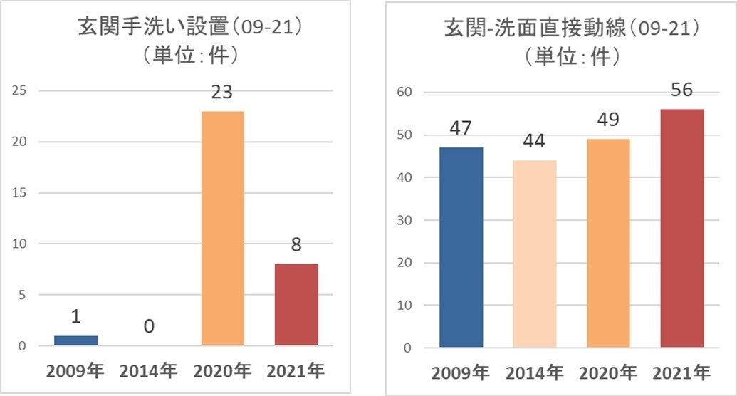 他方では、玄関から他の居室を通ることなく、直接洗面所に行くことができる動線の採用が、2020年と比較して7%増加しました。