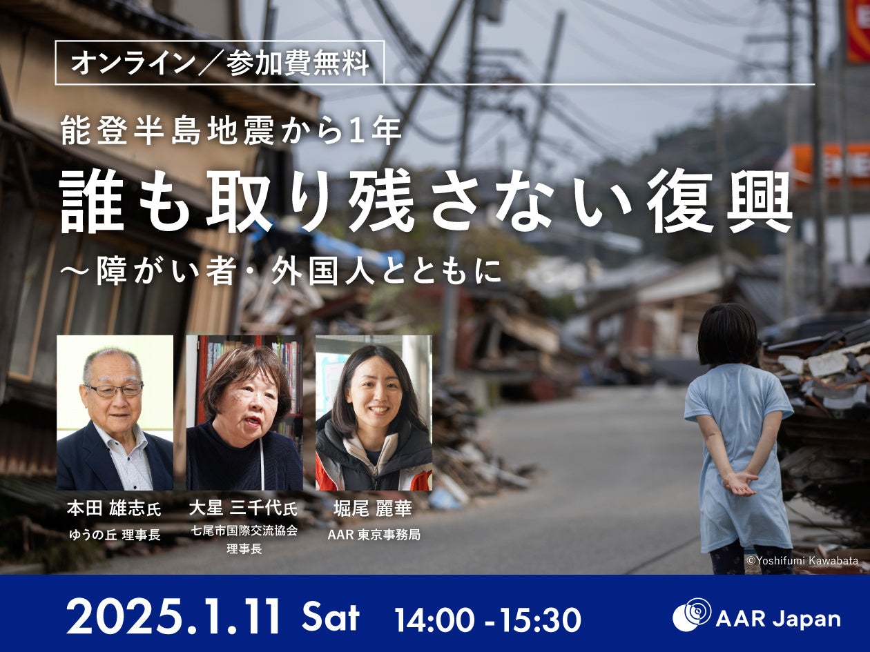 能登半島地震から1年:誰も取り残さない復興 ~障がい者・外国人とともに 2025年1月11日(土)オンラインシンポジウム AAR Japan