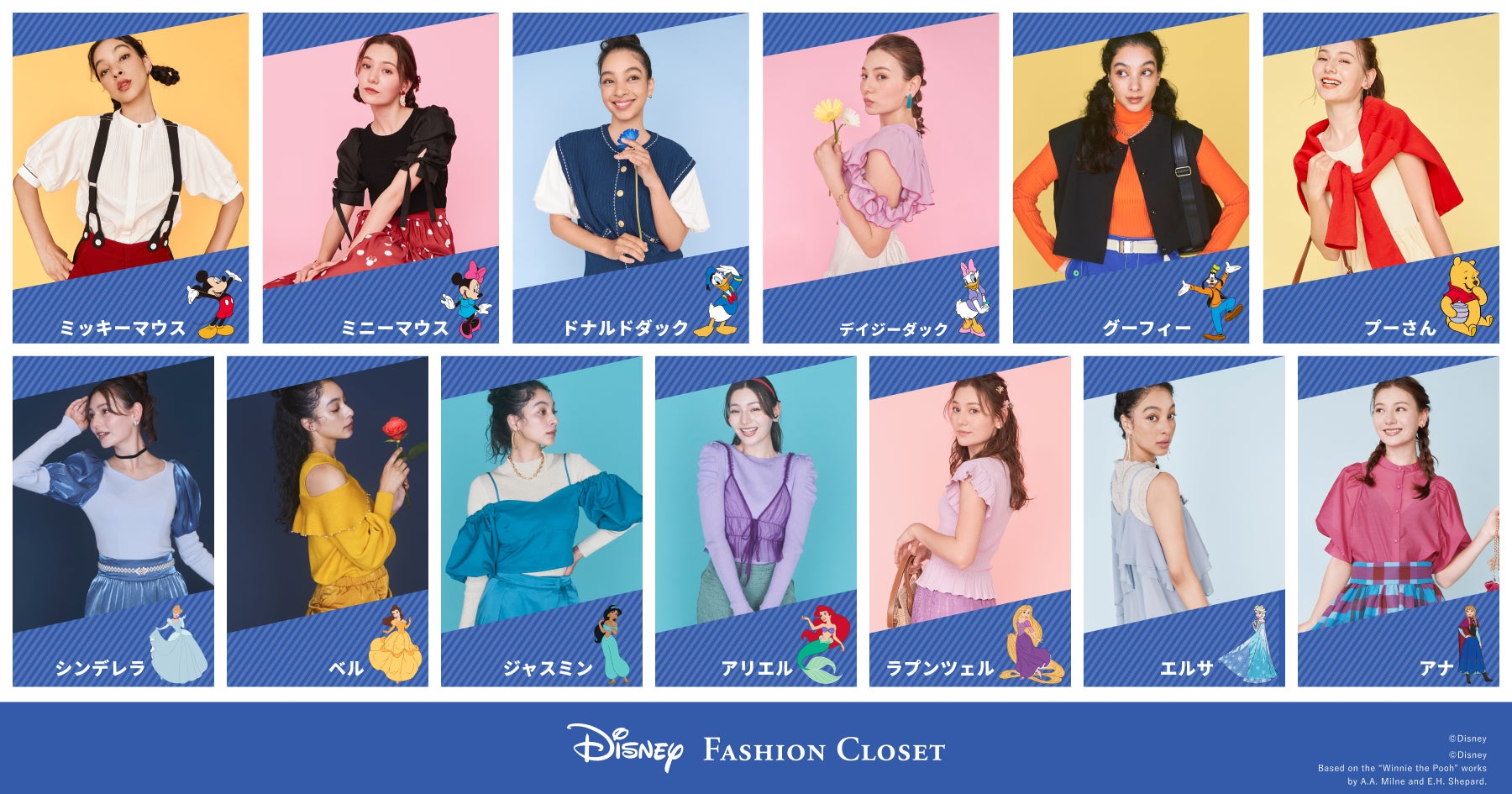 『Disney FASHION CLOSET』は、2023年10月より、ミッキーマウス、ミニーマウス、ドナルドダック、デイジーダック、グーフィー、シンデレラ、ベル、ジャスミン、アリエルデザインのバウンドコーデを取り扱ってきました。今回は、プーさん・ラプンツェル・アナ&エルサデザインの新キャラクターに加えて、ミッキー&フレンズデザインの夏バウンドコーデを追加しました。これにより、幅広いキャラクターデザインを楽しめるだけでなく、バウンドコーデのお出かけをオールシーズンで楽しめるようになりました。
