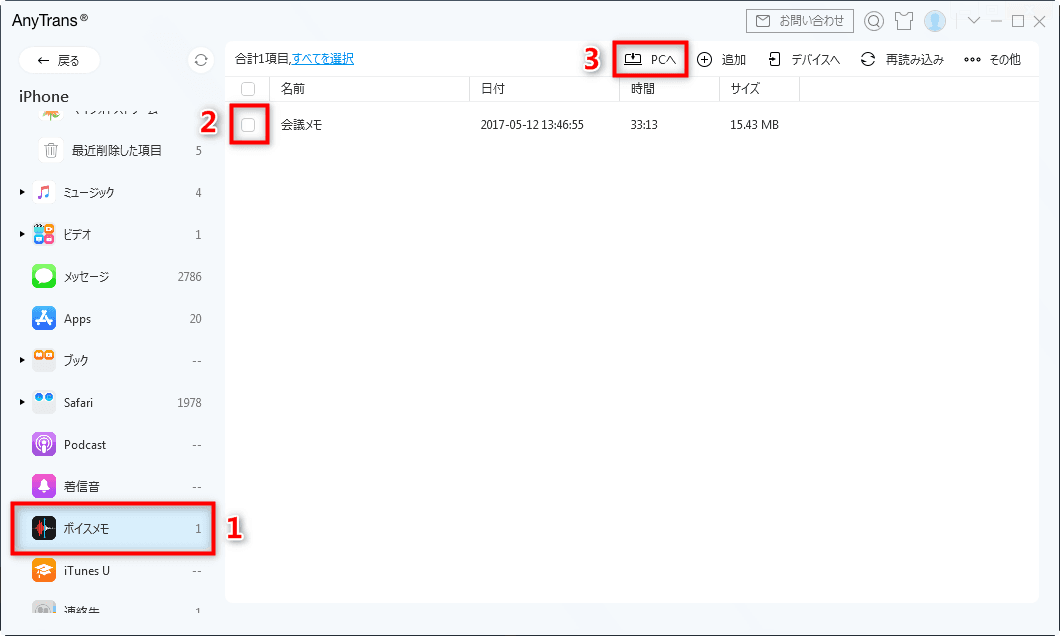 - 方法1.専用ツールAnyTransでiPhoneのボイスメモをPCに移行