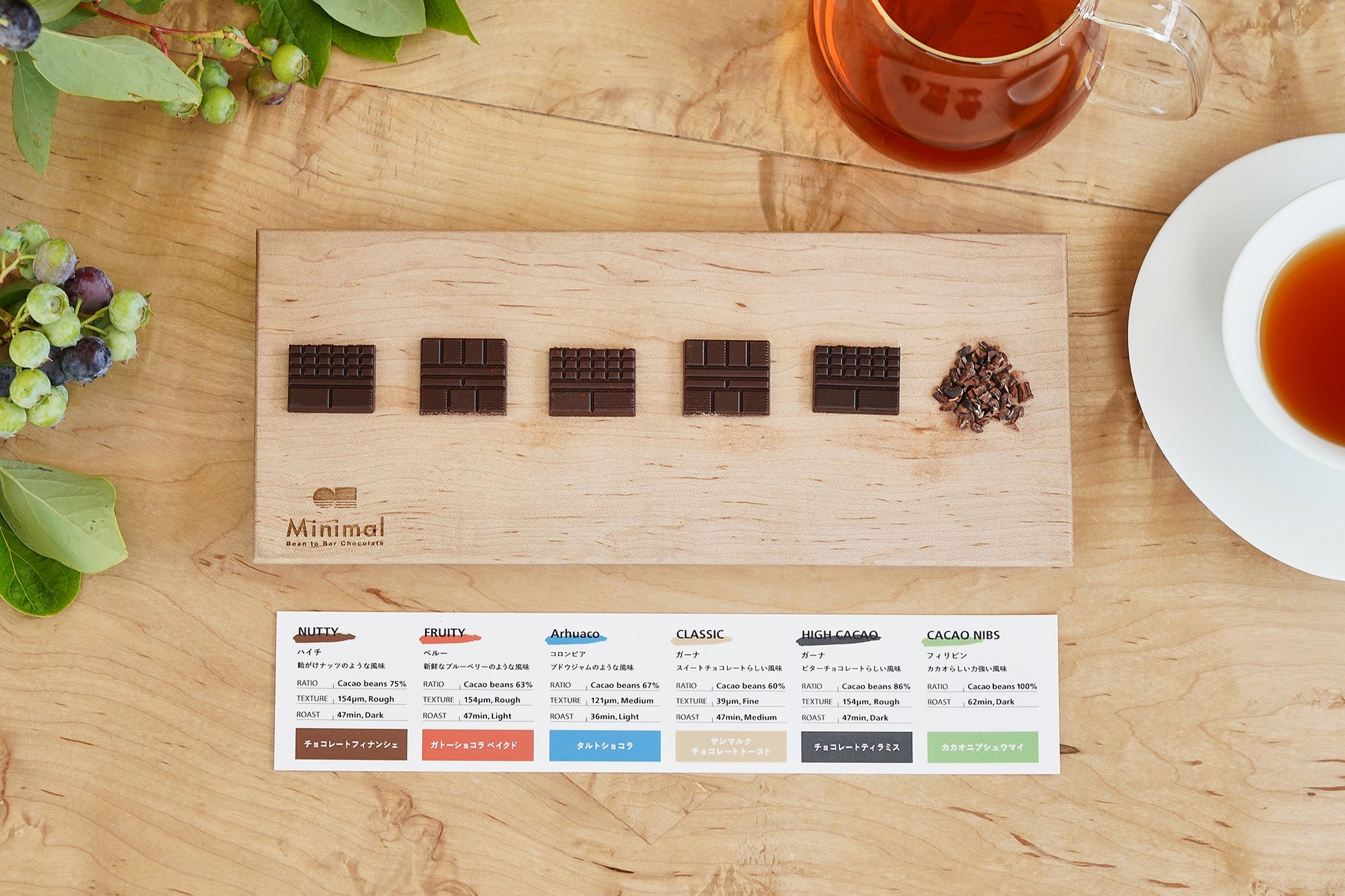 さらにカカオ豆からチョコレートを手づくりするMinimalならではのアフタヌーンティーとして、スイーツに使っているチョコレートは、板チョコレートとして単体でもお楽しみいただけます。