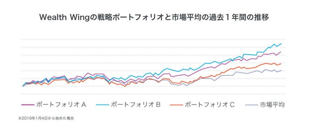 Wealth Wingは本来、ヘッジファンドで行われる高度な運用戦略、及びそのプロセスを、データサイエンスとテクノロジーを用いて自動化し高いリターンを目指す資産運用サービスです。投資家が投資をする際に必要な時間や手間を大幅に削減し、簡単・手軽な投資体験を実現しています。