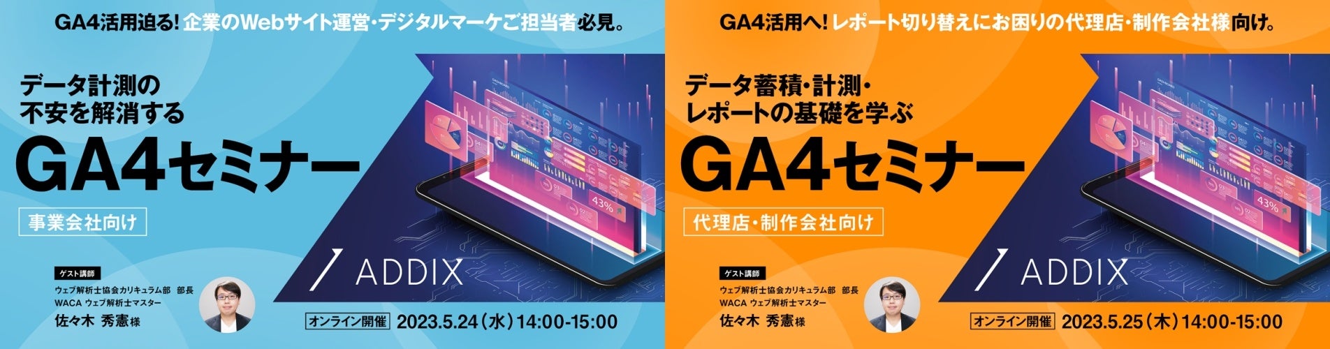 ②代理店・制作会社向けセミナー:https://service.addix.co.jp/seminar/event_ga4_230525