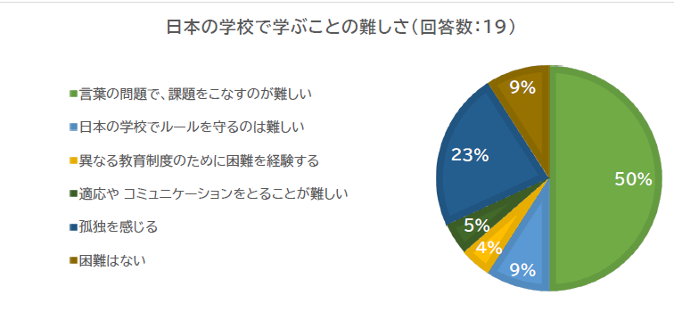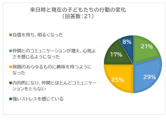 一方で、多くの子どもは徐々に日本語でのコミュニケーションが容易になり、日本人の友人を作り、日本での生活を楽しむようになってきていることも分かりました。