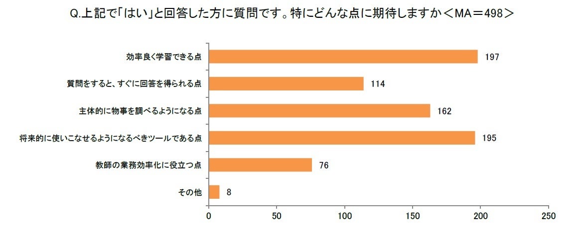 学習の効率化や将来性において期待が持てると同時に、自分で考える力や思考力への不安を持つ結果に