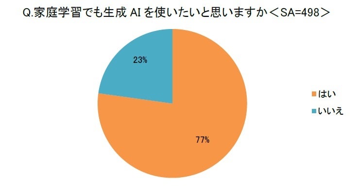 「学習の効率化」「将来性」に期待し、8割近くが家庭学習での活用にも賛成 ~一方で、生成AIに潜む課題を子どもに理解させた上で、教育現場での管理も求める結果に~