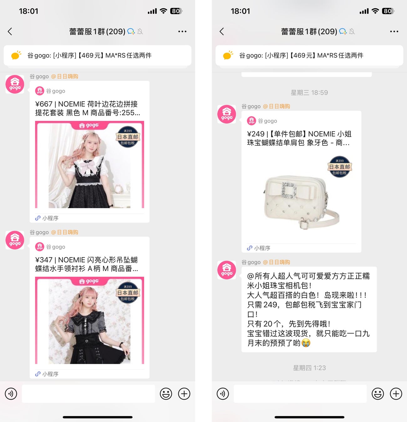 中国で最も普及しているソーシャルメディアアプリ「WeChat」内で簡易版のアプリプログラムが利用できるミニプログラムの「谷gogo」は、累計ユーザー数が66.8万人で、二次元アイテムやロリータファッションなど、Z世代の女性向け商品を幅広く取り扱っています。