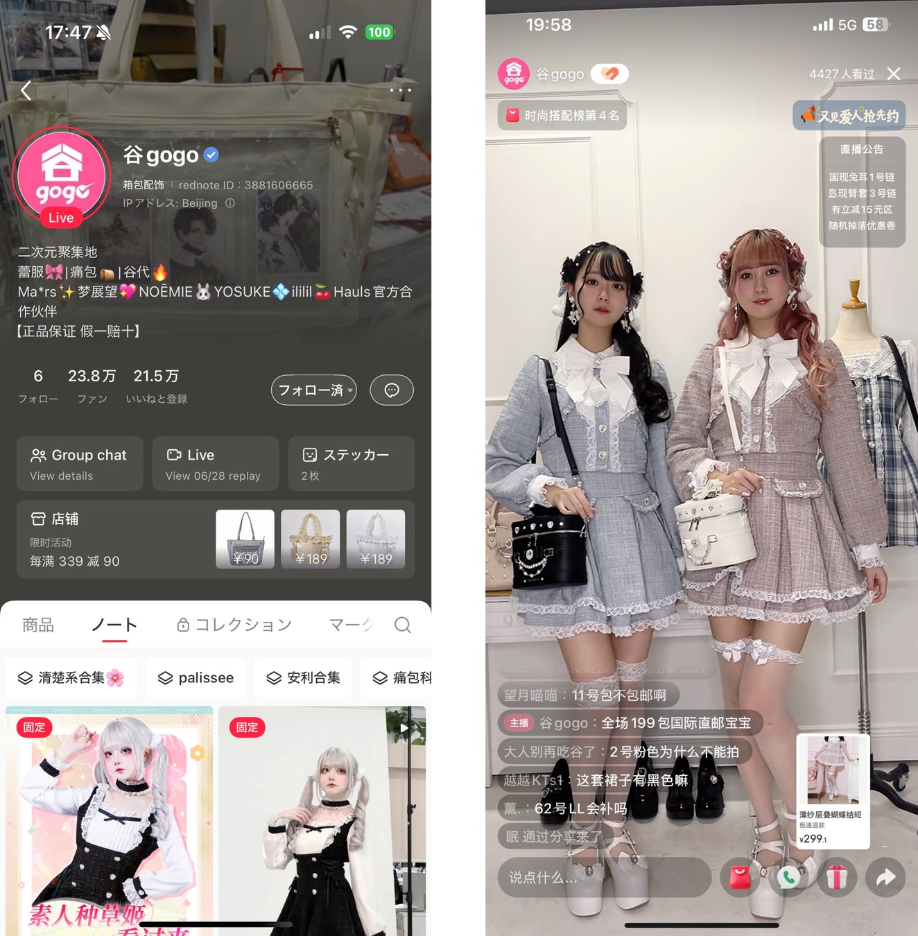 中国を代表するライフスタイル共有型SNSアプリの小紅書(Rednote)の二次元ファッション専門アカウント「谷gogo」は、ファロワーが22.7万人近くおり、投稿いいね数が19.5万を獲得しているアカウントです。