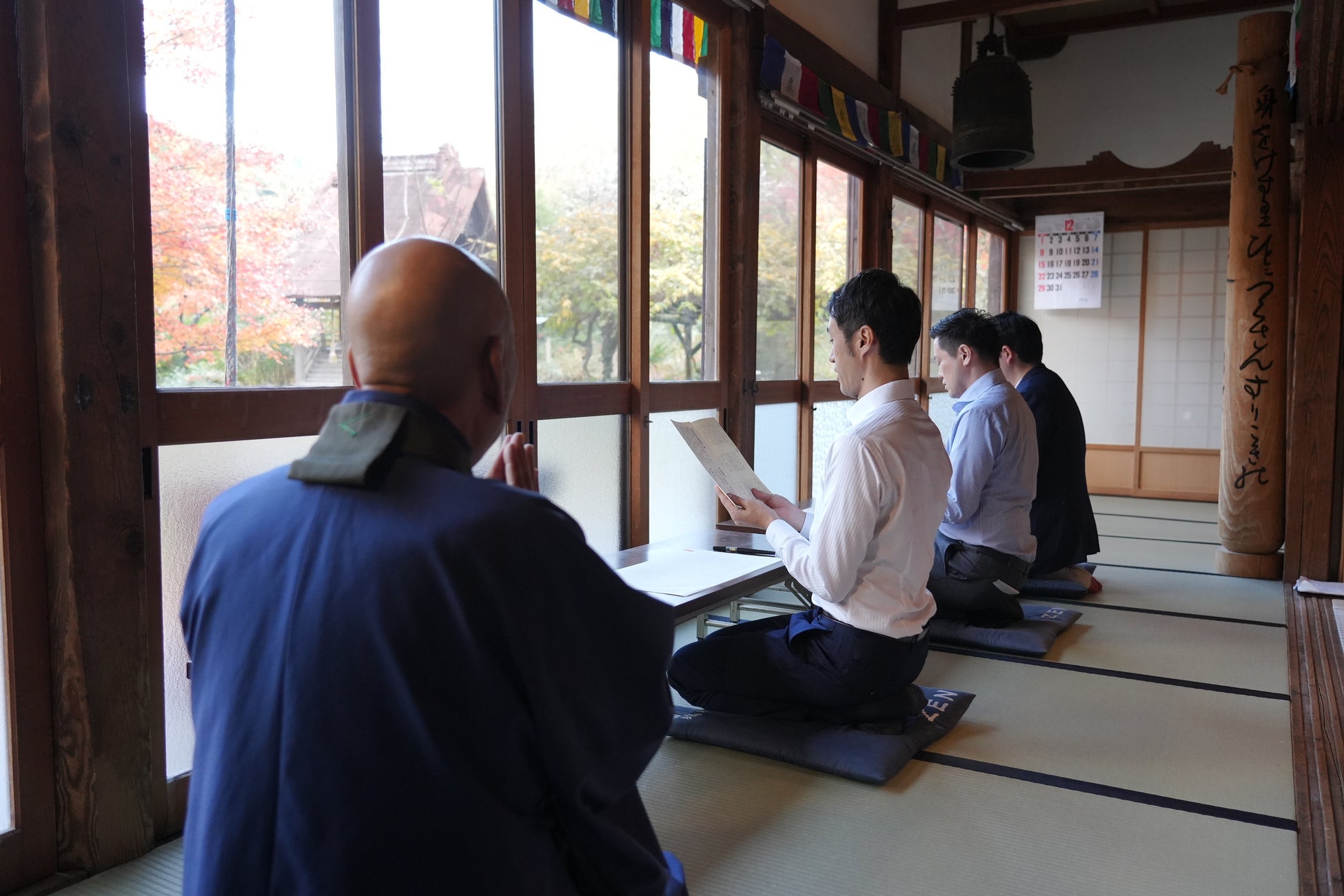 当日は、今回特別にご用意いたしました減塩精進料理のほか、写経、坐禅、ご住職による法話、作務などをご体験いただきました。都会の喧騒から離れ、非日常の空間の中で、ご自身の健康と向き合い、日頃の生活習慣を振り返る時間をお過ごしいただきました。