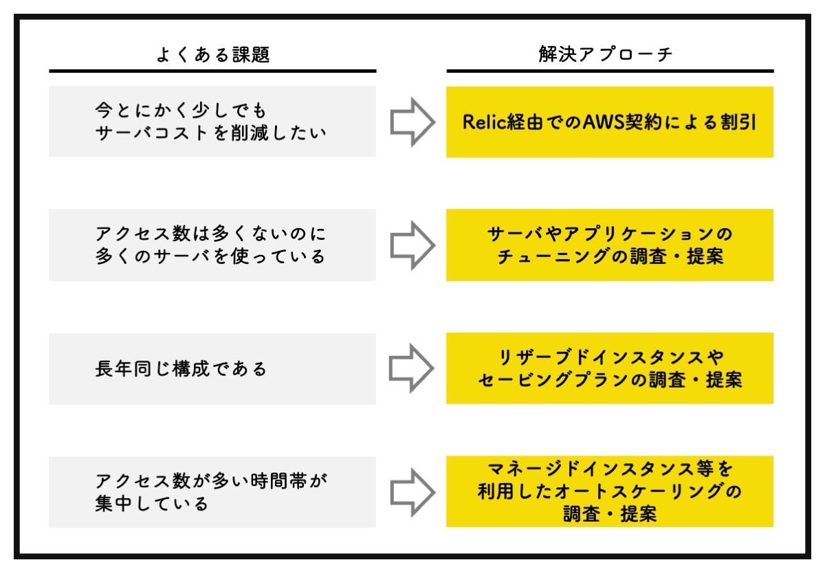 これらを踏まえ、Relicでは支援企業に適切な状態で新規事業開発に取り組んでいただくため、本サービスを提供するに至りました。既にサーバコスト削減支援を実施したお客様からも好評いただいており、今後もお客様が不要なサーバ費用に煩わされることなく、事業成長に注力できるようサポートしてまいります。