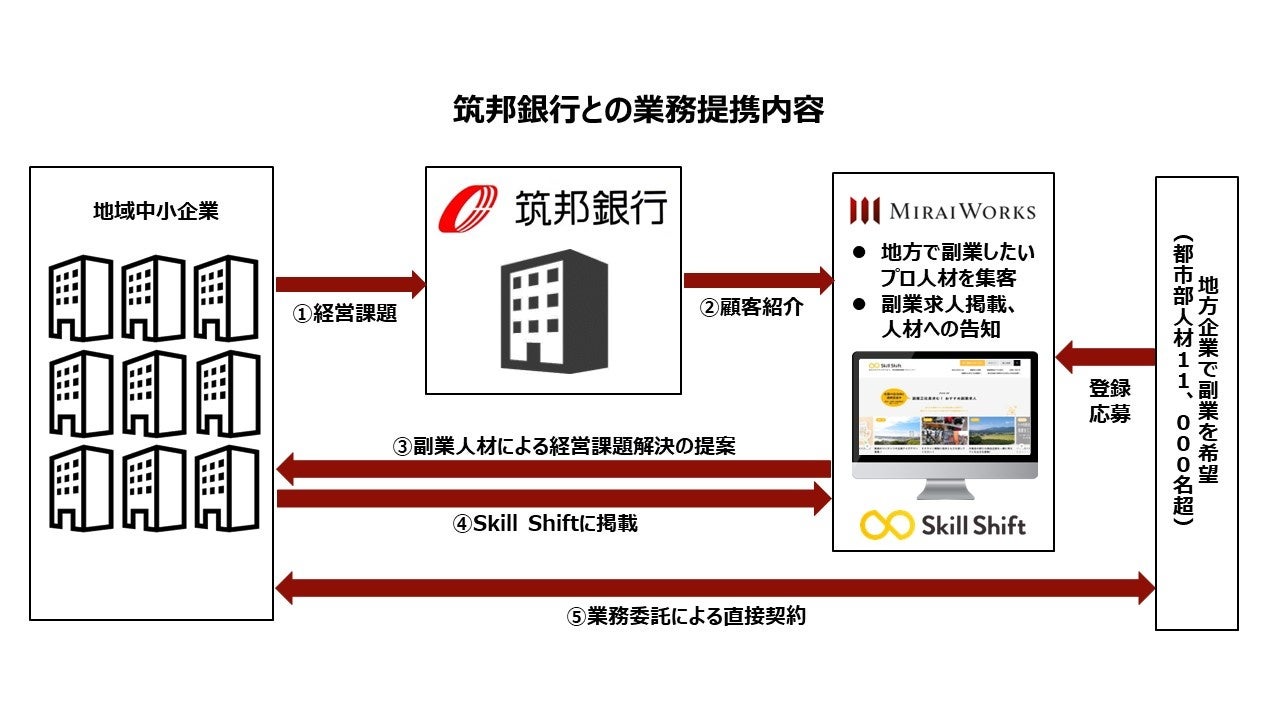 今回の提携により、自らのスキルを地域貢献に活かしたいプロフェッショナル人材と、筑邦銀行のお取引企業をマッチングすることにより、関係人口(※1)の創出・増加、人材流動化やスキルシェアにつなげ、日本経済の活性化に貢献して参ります。