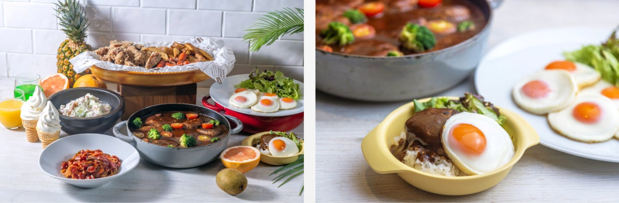 さらに、キッズコーナーも充実!から揚げやナポリタン、煮込みハンバーグなどをご用意。ロコモコを作ったり、ハンバーグナポリタンを作ったり、自分だけの組み合わせをお楽しみいただけます。
