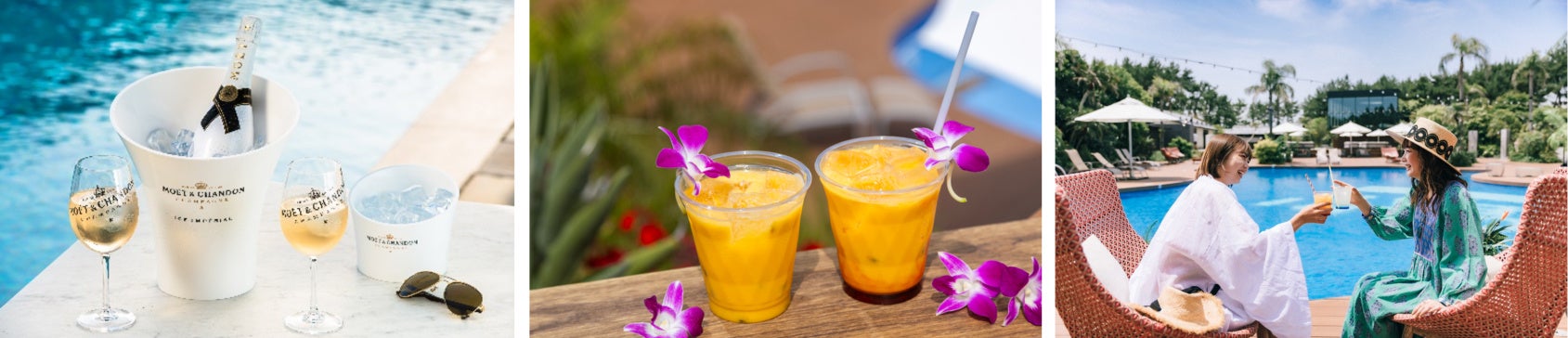 THE LIVING GARDENのプールサイドにはプールバーもOPEN。モエ・エ・シャンドン アイスアンペリアルをはじめ、生ビールやワイン、カクテルなどを販売。太陽の日差しがキラキラ輝くプールサイドでリゾート気分を盛り上げます。