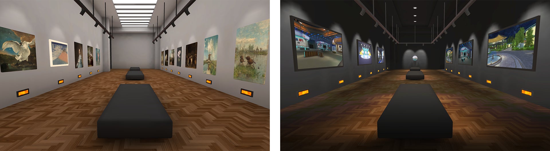 本エリアでは、美術館や博物館などをバーチャルで再現可能です。画像や動画の配置に加え、3Dモデルの配置も可能です。歴史的文化財を3Dモデルで配置し、アバターを活用した音声ガイドもご利用いただけます。