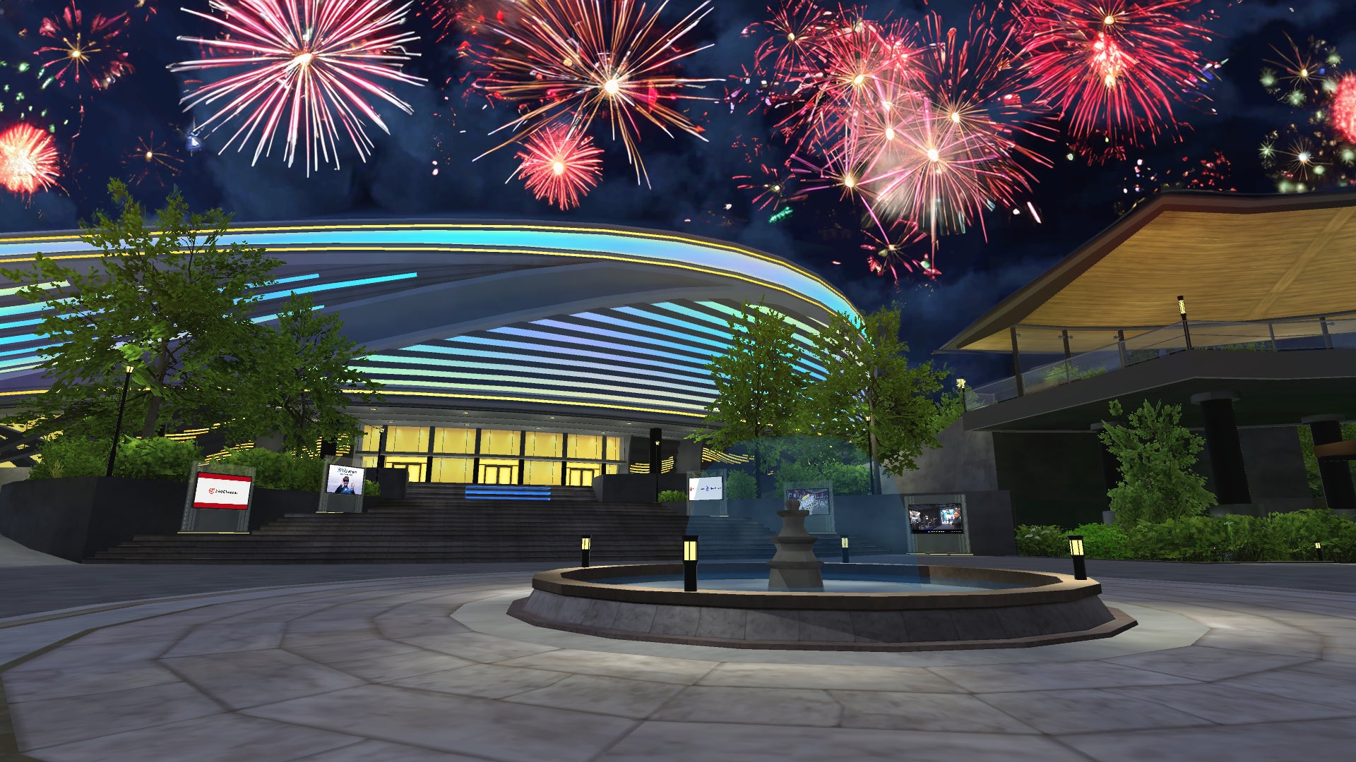 LIVEステージでは、エンターテインメント性のあるイベントの開催が可能です。音楽ライブやゲームイベント、会社の表彰の場などでご利用いただけます。発表に合わせてリアルタイムに切り替え可能なパネルの配置や、ユーザ様のチャットをモニター左右にリアルタイムに表示したり、イベントの進行に合わせて花火を打ち上げることも可能です。