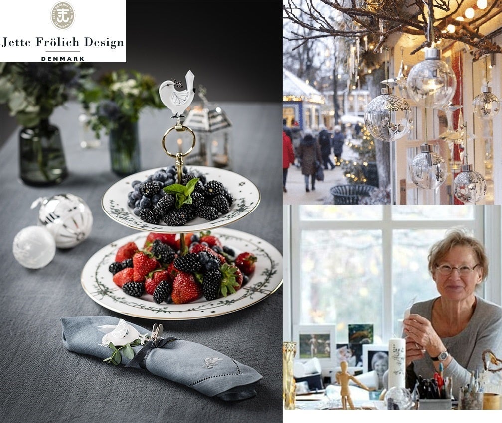 デンマークを代表するデザイナーの一人。王室御用達のグラスブランドホルムガードでのクリスマスのデザインや、デンマーク首都コペンハーゲンの中心街にあるイルムスボリフス(有名デパート)ではクリスマスのデコレーションを長きにわたり勤めました。また、コペンハーゲンにあるチボリ公園にはJette Frolich Design(イェッテ・フローリッヒ・デザイン)のお店があり、彼女が作り出すキャンドルホルダーやオーナメントなどの作品は、まるでおとぎ話を読んでいるかのような夢と生命力、そして北欧の暮らしが息づいています。