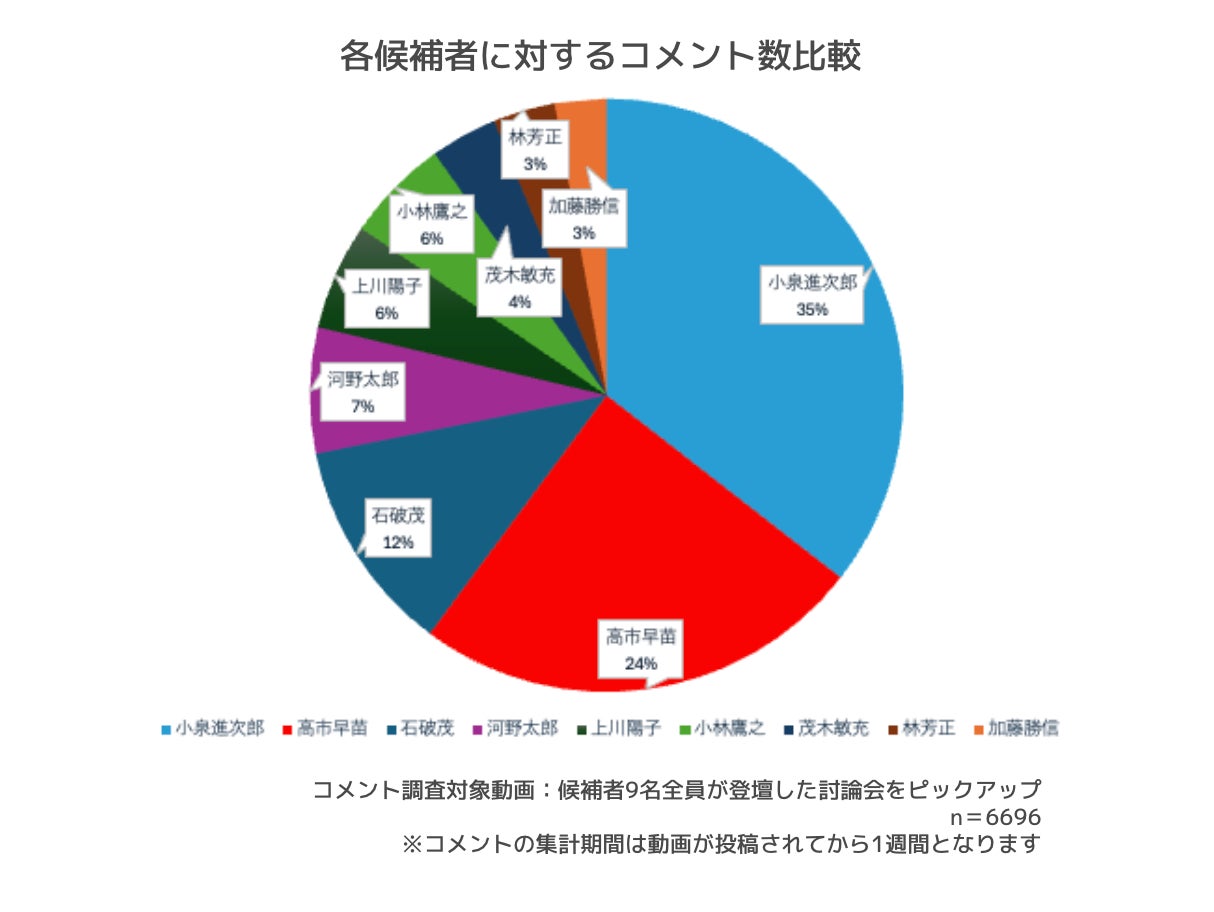 各候補者に対するコメントを分析 コメント数では小泉氏がTOPに。