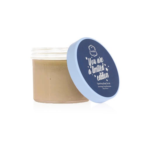 繊細に輝くシルバーグリッター入りのボディスクラブ。