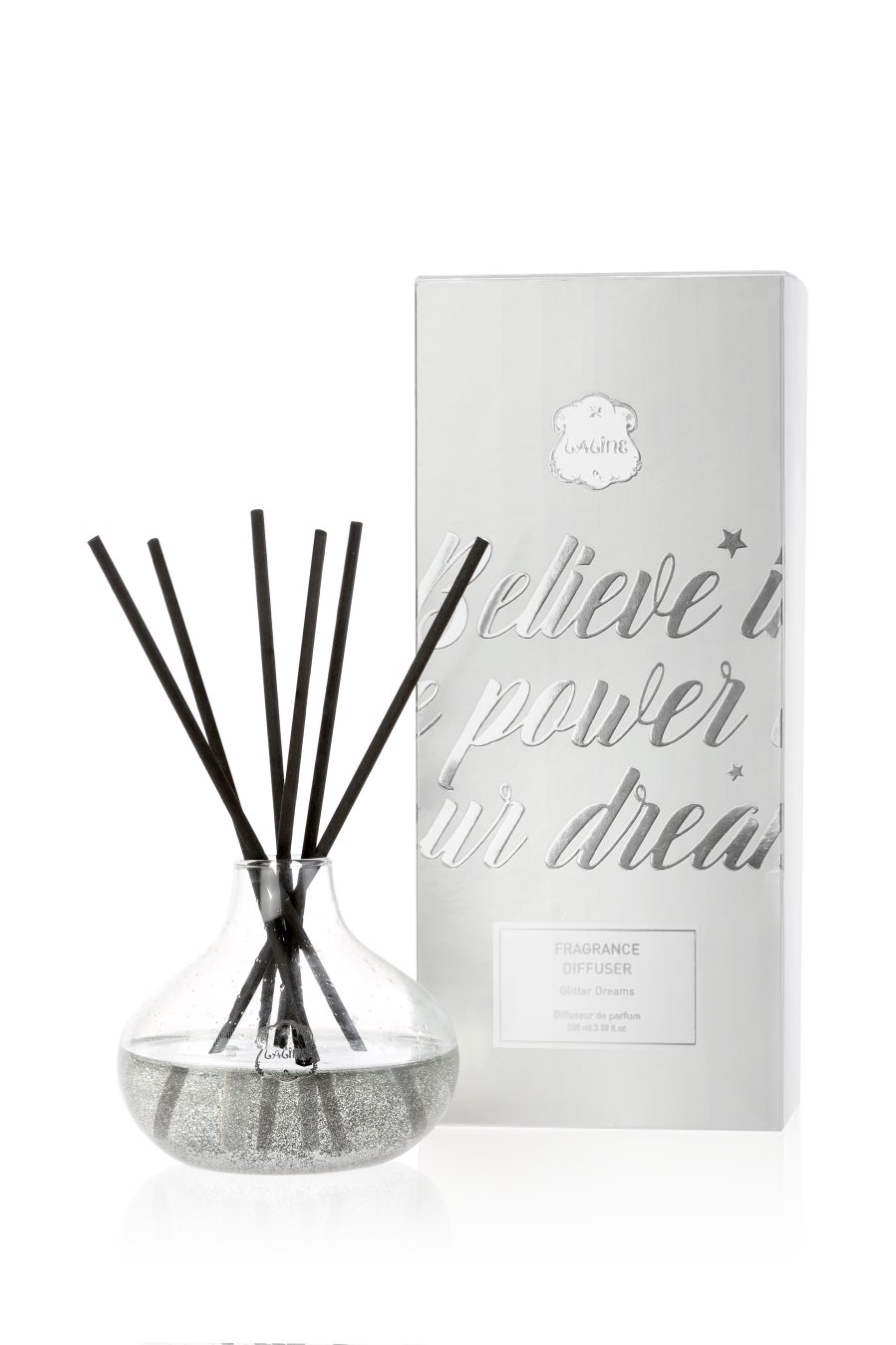 ときめく香りとシルバーのグリッターが空間を輝かせるフレグランスディフューザー。スタイリッシュなデザインでインテリアとしても存在感を放ちます。